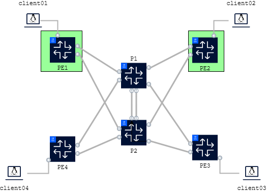 Topology Nodes PE1, PE2, Client01, Client02