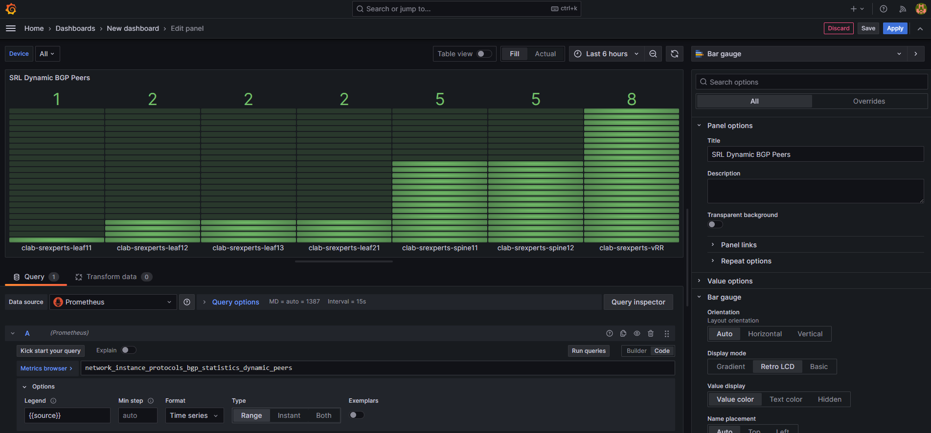 Following the same procedure, make a similar panel visualizing SR Linux Dynamic BGP Peers.
